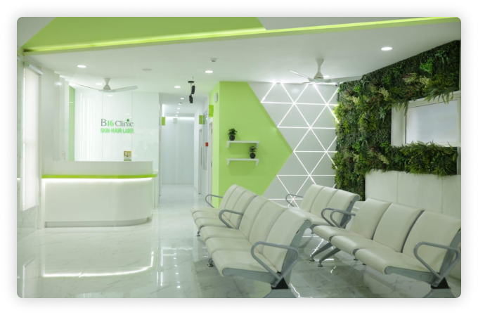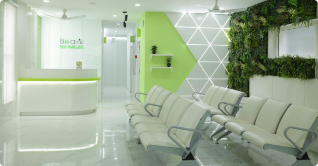 At B16 Clinic, we prioritize a patient-centered experience within a welcoming and modern facility. Our clinic is equipped with state-of-the-art technology to provide advanced dermatology and cosmetic treatments in a comfortable and hygienic setting. Each space is designed to ensure a calming environment, allowing clients to feel at ease while receiving top-tier, professional care.