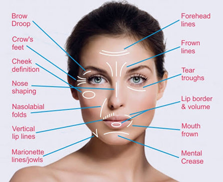 BOTOX is effective in treating Dynamic forehead lines or worry lines, Glabellar frown lines, Crow’s feet lines, droopy or slanting eyebrows, Widened jaw, Excessive sweating over palms, soles and underarms( hyperhidrosis), Gummy smile, Nasolabial folds, etc. Sometimes, the combination of both fillers and Botox is used too to achieve the ideal results.